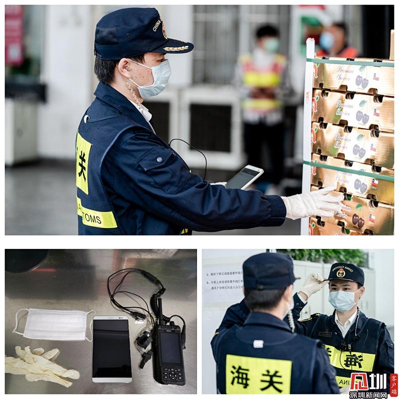 在文錦渡海關(guān)上班的祝子默開始了他上崗的一天。在接受了口岸監(jiān)管場的體溫檢查后,他戴上口罩和手套,裝配上海關(guān)查驗單兵設(shè)備,對進(jìn)口水果實施查驗。