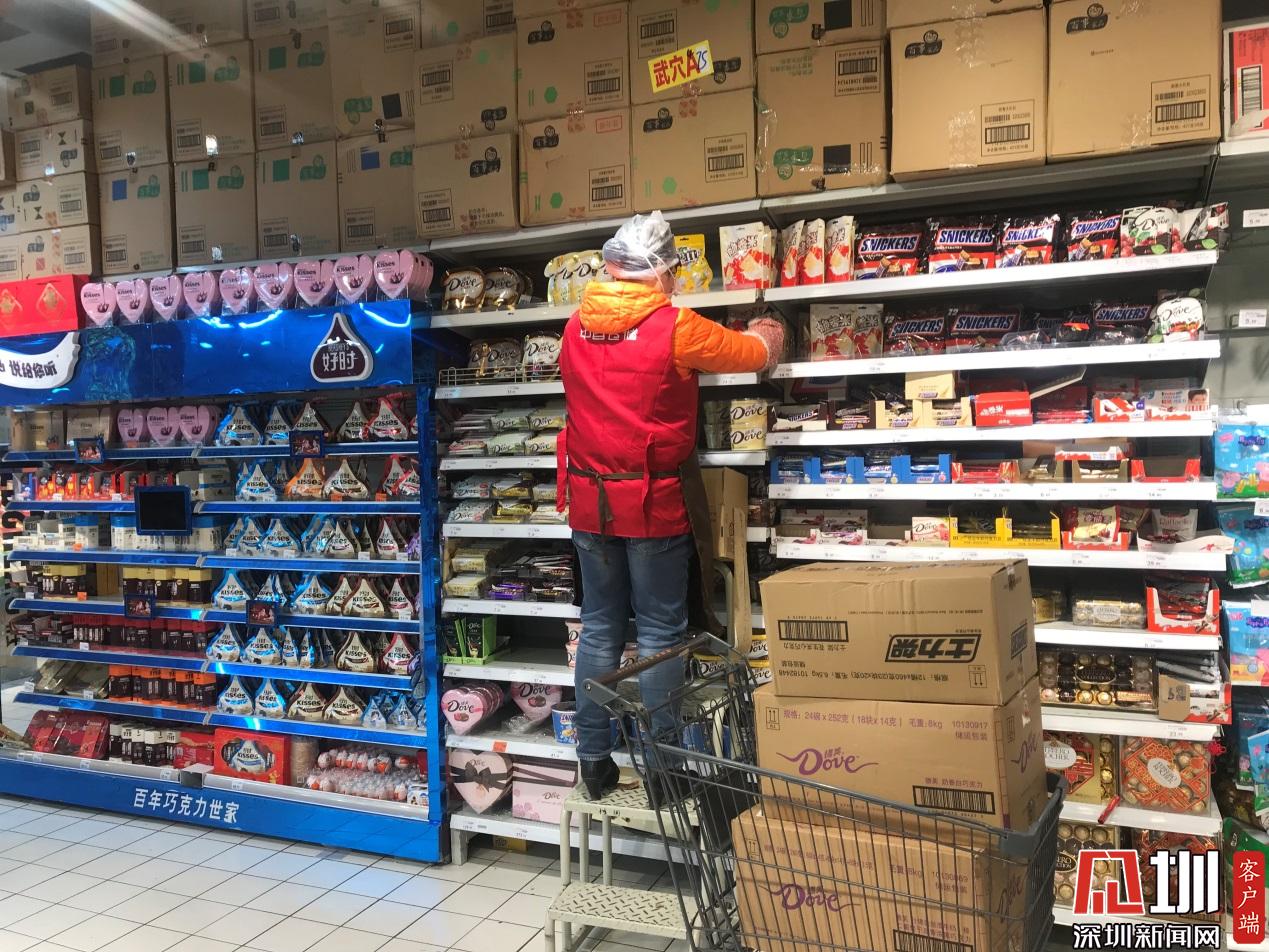 超市里,很多顯眼位置都貼有“戴口罩”、“保持一米距離”、“購物籃已消毒”等提示,超市的廣播也循環(huán)播放各種須知?!艾F在都買不到手套了?!眳闻亢凸ぷ魅藛T借了兩個一次性購物袋當作手套戴上,然后開始挑選商品。雖然沒有挑選到適合碼數的尿不濕,呂女士也買了滿滿的一車。