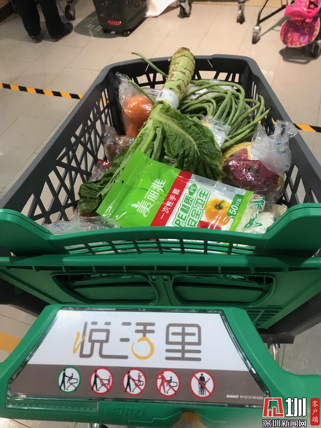 呂女士在萬(wàn)達(dá)廣場(chǎng)超市里采購(gòu)的新鮮蔬菜水果。