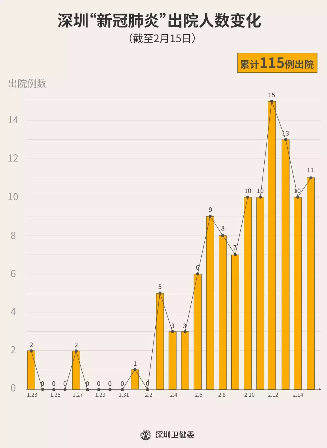 2月15日下午,經(jīng)專家組會(huì)診,深圳再有11名新型冠狀病毒肺炎確診患者出院,累計(jì)達(dá)115人。