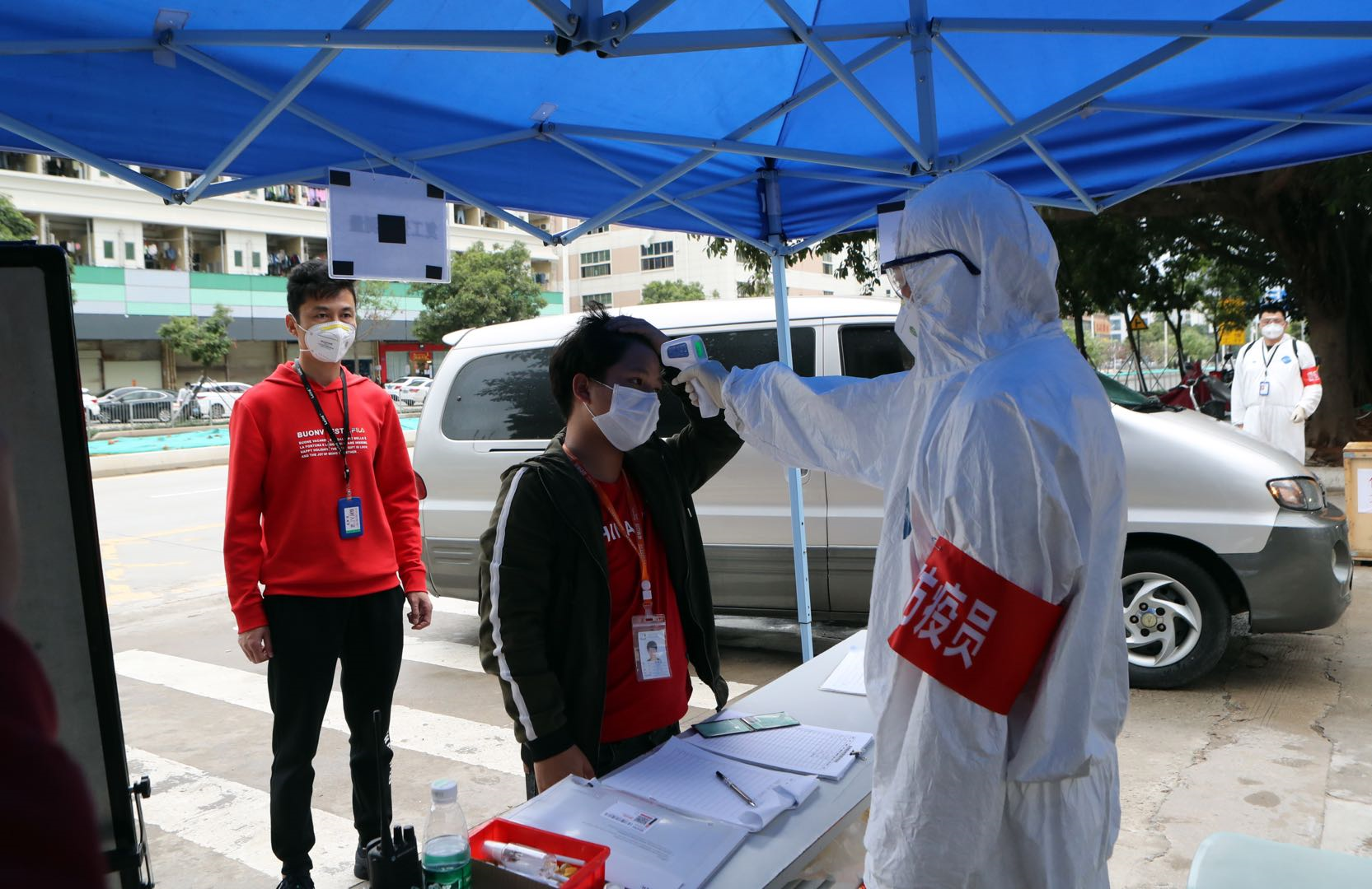 “進入園區(qū)前,所有員工必須正確佩戴一次性口罩,自覺配合進行體溫測量,不然不得進入廠區(qū)。”在門口執(zhí)勤的保安說。