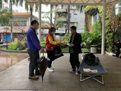 冒雨為轄區(qū)流浪人員送去口罩