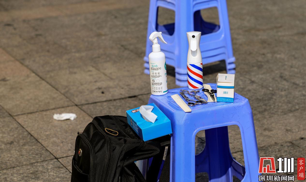 記者在現(xiàn)場注意到,在松崗街道星港城志愿服務(wù)U站前,共設(shè)置了四個座位,每個座位旁都配備了剪刀、電推、梳子等簡單的理發(fā)工具,由于義剪服務(wù)都設(shè)在空氣流通順暢的空闊室外,理發(fā)設(shè)備只能從簡。此外,每個座位還配有酒精噴霧、酒精棉片等消毒用品。據(jù)現(xiàn)場理發(fā)師介紹,他們每為一位工作人員剪完頭發(fā)后,都會對所有使用過的理發(fā)工具進(jìn)行消毒。