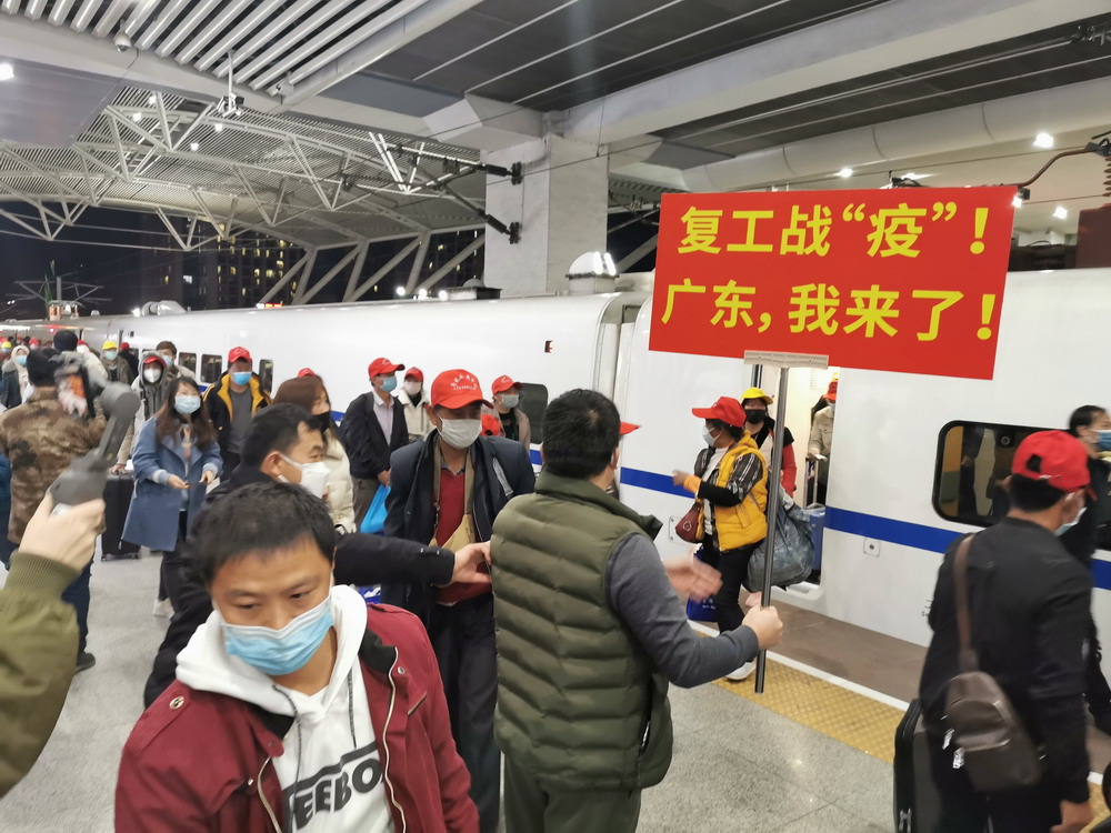 目前,在全省上下全力抗擊新冠肺炎疫情的同時,廣東各類企業(yè)已陸續(xù)復(fù)工復(fù)產(chǎn)。針對節(jié)后部分務(wù)工人員返程難、部分企業(yè)用工難的問題,廣東省人社部門在全面落實省委省政府疫情防控決策部署的前提下,主動加強與勞務(wù)輸出省份溝通對接,對疫情相對平穩(wěn)、來粵就業(yè)人員相對集中的云南、四川等部分省份,聯(lián)合當(dāng)?shù)厝松绮块T共同組織開行“點對點”返粵返崗專列,為務(wù)工人員提供全流程的返崗對接服務(wù)。據(jù)悉,在本趟列車開行前,廣東省人社部門根據(jù)重點企業(yè)和項目復(fù)工復(fù)產(chǎn)安排,向云南省人社部門提供不同時段的企業(yè)空缺崗位共11萬個,由當(dāng)?shù)厝松绮块T按需組織發(fā)動務(wù)工人員并開展集中健康檢測,出具健康證明;途中,云南人社部門會同鐵路部門,共同落實好務(wù)工人員進站、候車、乘車、出站等環(huán)節(jié)的疫情防控和客運服務(wù)等措施,確保復(fù)工人員安全、有序、溫馨出行;到粵后,廣東人社部門提供專車將務(wù)工人員接駁至企業(yè),幫助企業(yè)做好疫情期間員工組織接收、上崗復(fù)工等準(zhǔn)備工作。廣東省人社廳相關(guān)工作人員表示:“今年受疫情影響,節(jié)后短期缺工現(xiàn)象比往年更為突出。特殊情況需要特別舉措,除了讓務(wù)工者免費乘坐返崗專列,我們還為一些去汕頭、陽江等較遠地區(qū)企業(yè)而沒法當(dāng)天到達的零散務(wù)工者,貼心地提供免費住宿,還買好次日去企業(yè)所在地的車票,送他們上車,并對接當(dāng)?shù)厝松绮块T安排車輛接駁至廠。我們通過這種‘一條龍’無縫對接服務(wù),既滿足企業(yè)復(fù)產(chǎn)的用工需求,又降低返程運輸?shù)囊咔閭鞑ワL(fēng)險”。