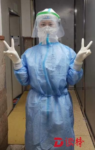 在忙碌之余,3位隊(duì)員也收獲了一份感動(dòng)。原來(lái),因?yàn)樗齻兌荚诜雷o(hù)服外面寫(xiě)上了“廣東”和自己的名字,所以一進(jìn)入隔離病房后,就有患者向她們道謝:謝謝廣東的支援,你們辛苦了!“那一瞬間真的感覺(jué)很暖心,很感動(dòng)?!?/p>