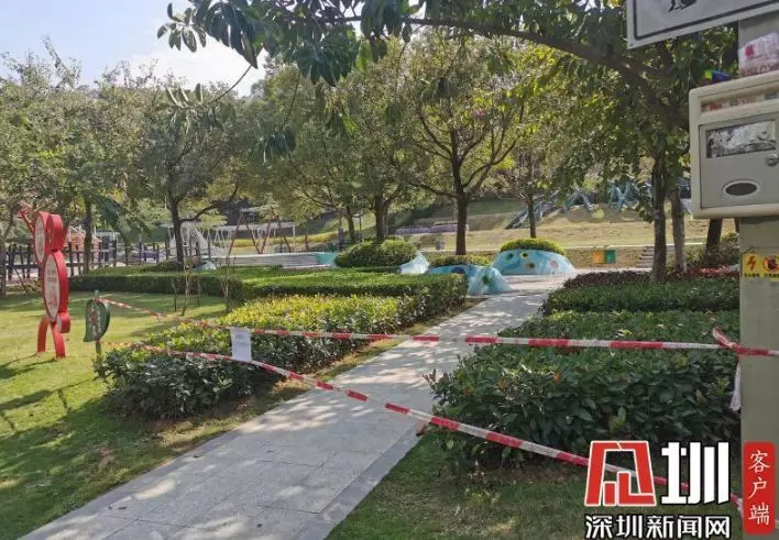 在光明區(qū)新城公園,記者看到公園里游樂設(shè)施區(qū)域已被封,暫未對(duì)外開放。道路兩旁的小喇叭正播放著防疫宣傳廣播,提醒市民出門戴好口罩,勤洗手,注意防護(hù)。