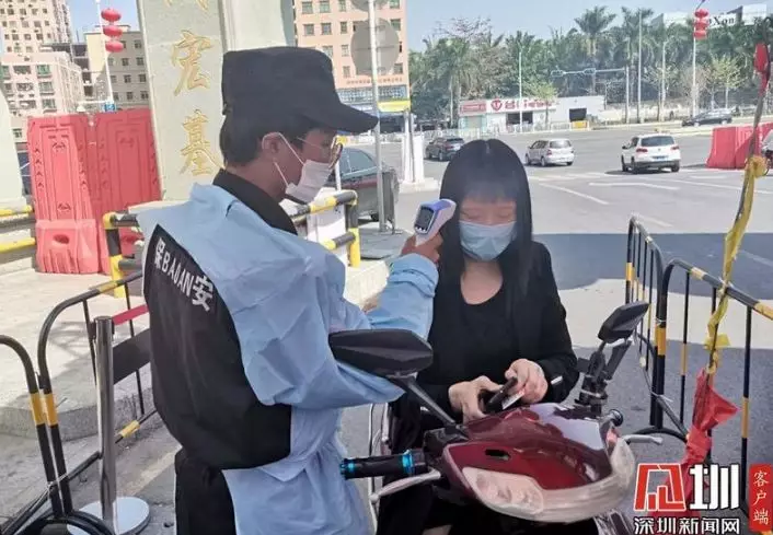 市民進(jìn)入社區(qū)需測量體溫。路上的車輛較前幾日漸漸增多。