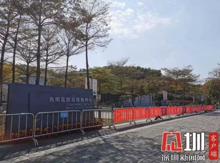 光明區(qū)群眾體育中心大門口被鐵馬圍著,只留下一處小門,一旁有保安值守??从浾呱锨?,他趕緊勸誡道:“如果沒有重要事情就不要進(jìn)去了,現(xiàn)在館內(nèi)無活動。”