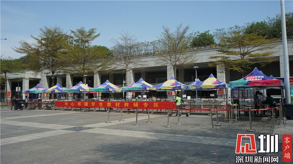 中心書城外另設(shè)戶外教材教輔專區(qū),方便市民購(gòu)買,減少室內(nèi)聚集。