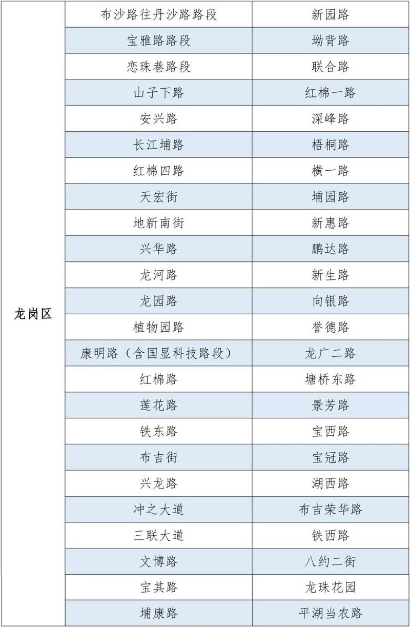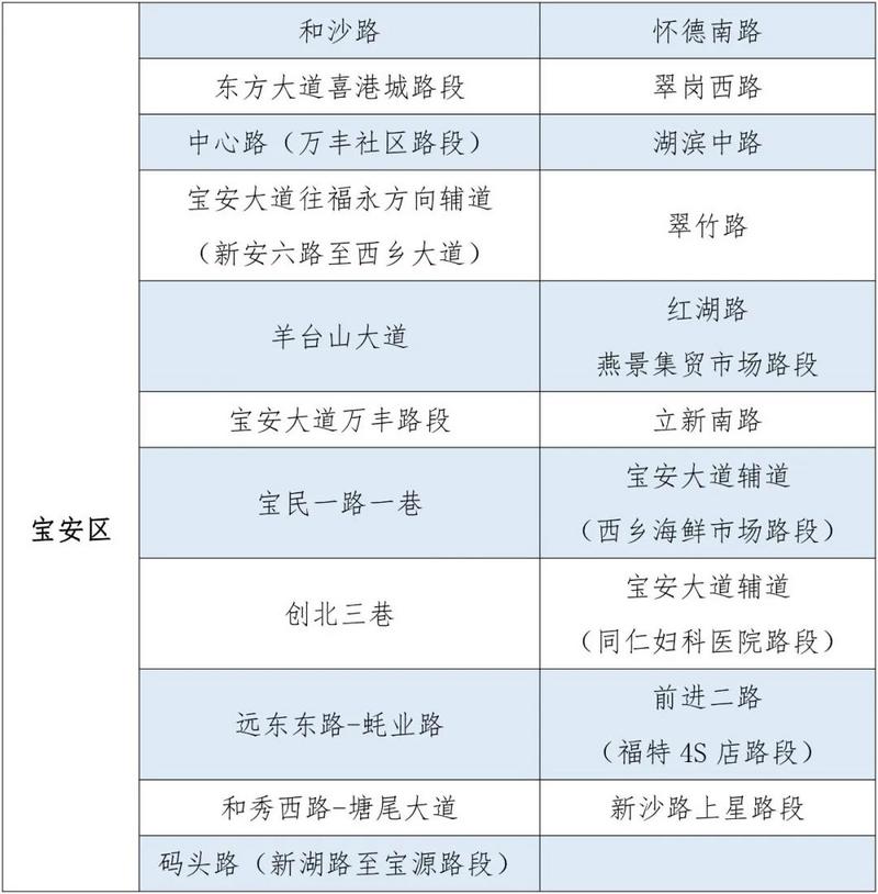 此外,根據(jù)市民反映的信息,深圳交警進(jìn)行實(shí)地走訪、勘查,決定再增設(shè)20條路段作為疫情期間臨時(shí)停車區(qū)。截至2020年3月3日,深圳交警共在全市171條路段做為疫情期間道路臨時(shí)停車區(qū),具體設(shè)置路段如下: