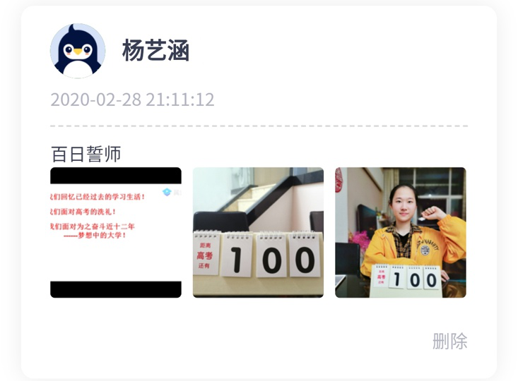 “光陰似箭,日月如梭,一晃眼,高中三年馬上就結束了,現在還有最后100天,我們就將面臨人生的第一道大關——高考!高中三年堅持為此,高中三年拼搏為此,最后的100天,努力復習,祝自己也祝大家,高考順利!”高三(16)班的陳國松在班級群里給大家送出了祝福。