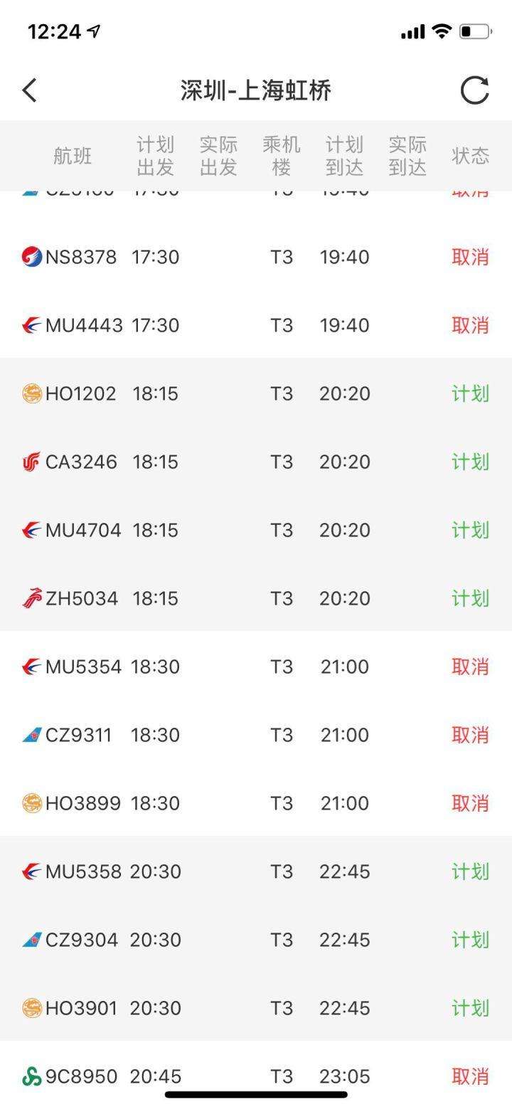 不僅是深圳飛往杭州的CA1736航班,記者發(fā)現(xiàn),今晚深圳飛往北京、上海、南京等國內(nèi)多個(gè)城市的航班,均顯示為取消狀態(tài)。而原計(jì)劃17:45由深圳飛往杭州的CA1734和原計(jì)劃22:05由深圳飛往杭州的MF8384航班,均顯示為取消狀態(tài)。