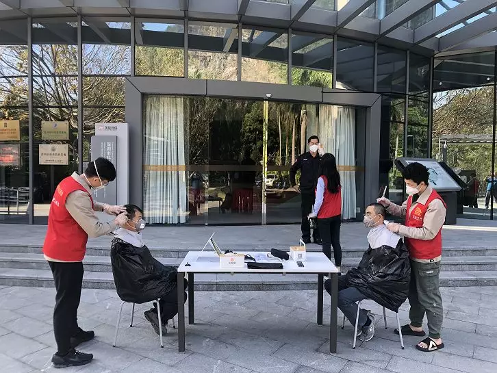 二月二,龍?zhí)ь^,一把椅子、一面鏡子、一套剃發(fā)工具,鹽田能源生態(tài)園的簡(jiǎn)易理發(fā)室開張啦。防疫先鋒戰(zhàn)斗隊(duì)五人義剪小分隊(duì)隨即開始行動(dòng),對(duì)理發(fā)室開啟自然通風(fēng),對(duì)理發(fā)用具進(jìn)行消毒,清潔雙手,全部使用一次性“斗篷”,確保理發(fā)過程中一“客”一換一消毒……準(zhǔn)備工作做好后,Tony老師開啟微信排號(hào),統(tǒng)一戴上口罩,測(cè)量體溫登記后,提拉剪推,一氣呵成。本次義剪為30余名員工解決了“頭”大事,大家“輕裝上陣”,將以更飽滿的精神投入到疫情防控和安全生產(chǎn)工作中。