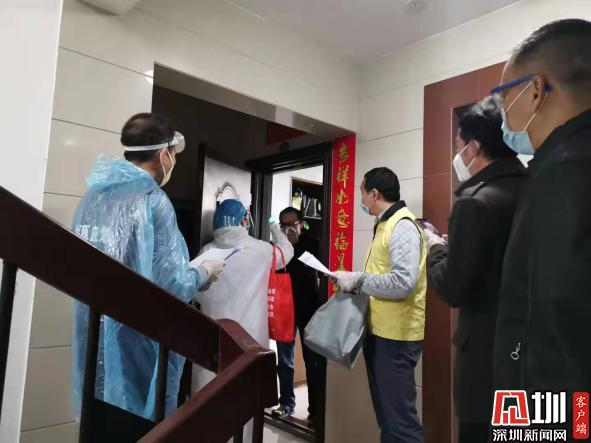 許曉銳(著黃馬甲)協(xié)助醫(yī)生對韓國返深家庭進行核酸檢測采樣