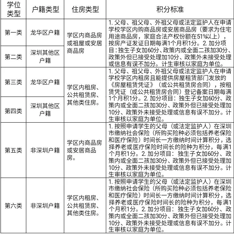 深圳戶籍。申請入學(xué)適齡兒童、少年的父母(或法定監(jiān)護(hù)人)戶籍遷入深圳時(shí)間最長的一方計(jì)算積分,每滿一個(gè)月加0.1分。