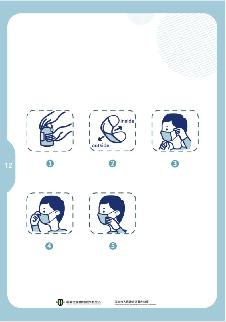 首先洗手——確認內(nèi)外:有鼻夾的一端朝上,淺色一面朝自己——將掛繩繞在耳朵上,拉開口罩,把鼻、口、下巴罩好——把鼻夾沿鼻梁處貼緊——適當調(diào)整口罩,使口罩周邊充分貼合面部。