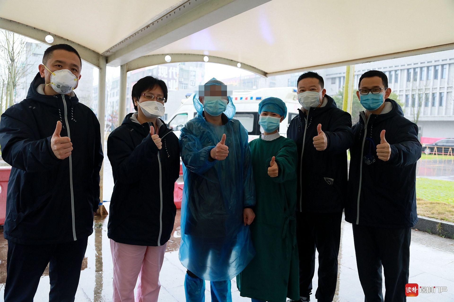 3月8日,監(jiān)利縣首例新冠肺炎重癥患者張建(化名,中)治愈出院后與深圳醫(yī)療隊(duì)醫(yī)護(hù)人員合影留念。