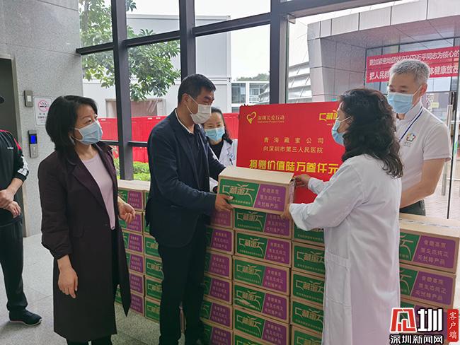 為了向這些最美的逆行者致敬,市關(guān)愛辦攜手愛心企業(yè)青海藏蜜公司與深圳市康輝旅行社,看望慰問一線的醫(yī)務(wù)工作人員。青海藏蜜公司向一線醫(yī)護(hù)人員捐贈(zèng)1500盒青藏高原野花蜜,總價(jià)值6.3萬元。深圳藏蜜營銷管理有限公司總經(jīng)理王大鳴動(dòng)情地說,抗擊疫情是一場沒有硝煙的戰(zhàn)役,牽系著所有人的心,因?yàn)獒t(yī)護(hù)人員的日夜守護(hù)與付出,大家才能安心復(fù)工,照常生活。希望醫(yī)護(hù)人員能在勞累之余,泡上一杯蜂蜜水,增強(qiáng)抵抗力,緩解心里壓力,更好地續(xù)航戰(zhàn)斗。