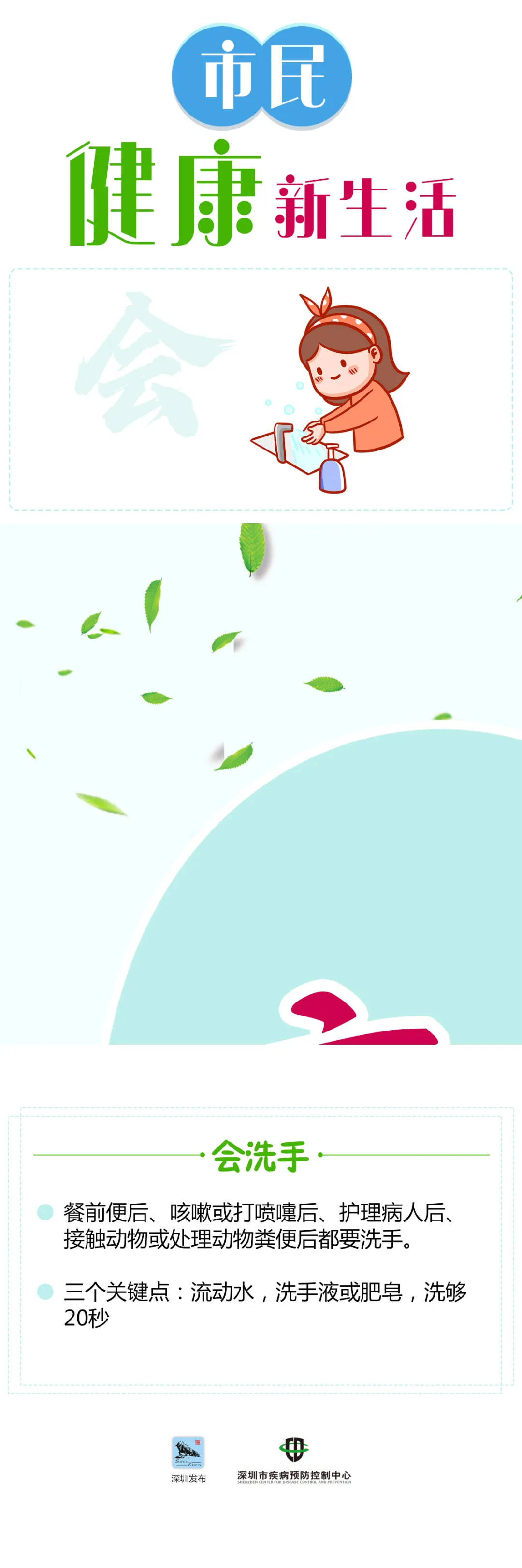 餐前便后、咳嗽或打噴嚏后、護理病人后、接觸動物或處理動物糞便后都要洗手
