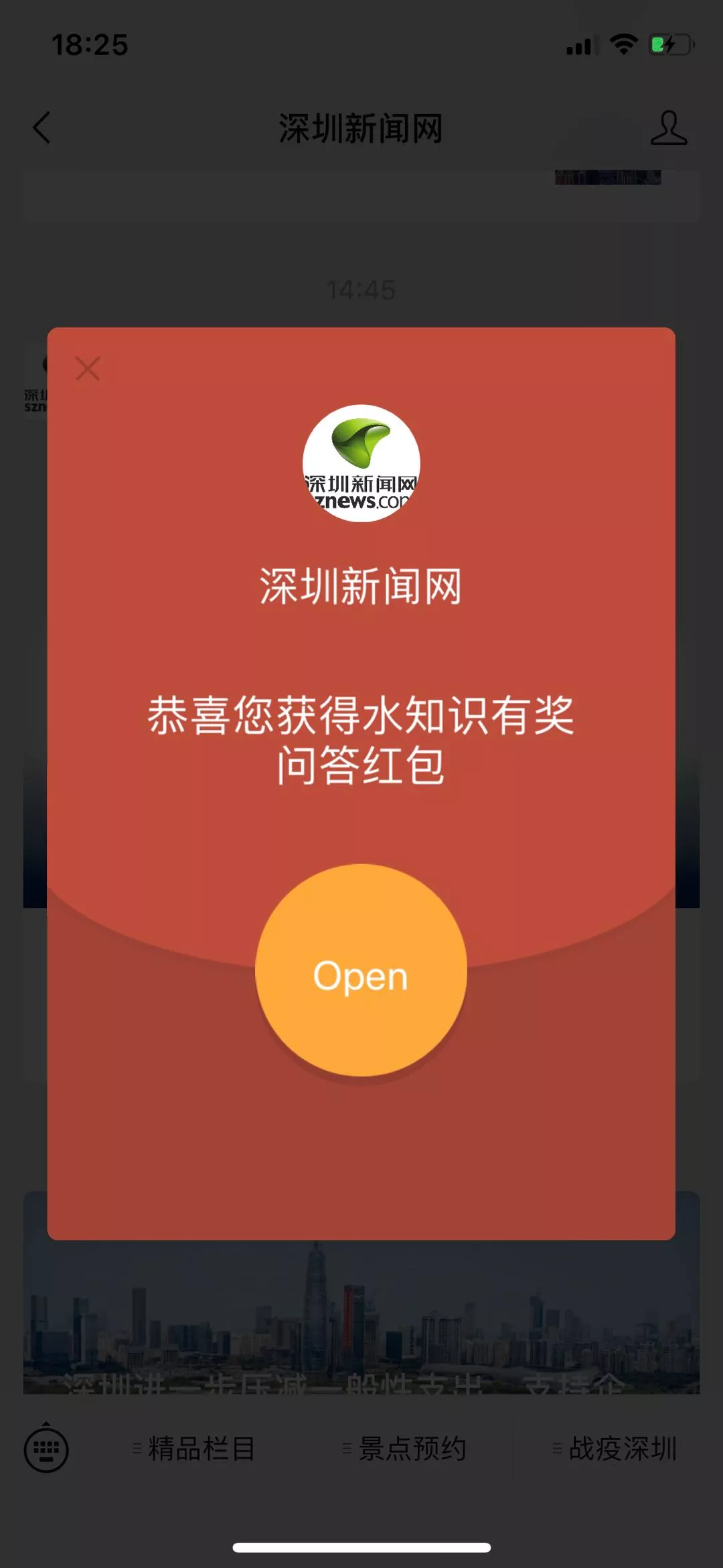 如果您已經關注了“深圳水務”,可以在公眾號留言欄輸入“游戲”、“答題”“紅包”等關鍵詞哦。