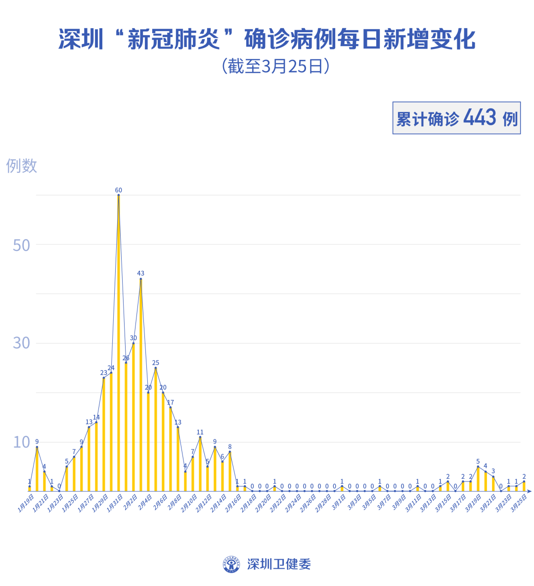 截至3月25日24時(shí),深圳累計(jì)報(bào)告“新冠肺炎”病例443例。3月25日當(dāng)天新增2例,出院1例。