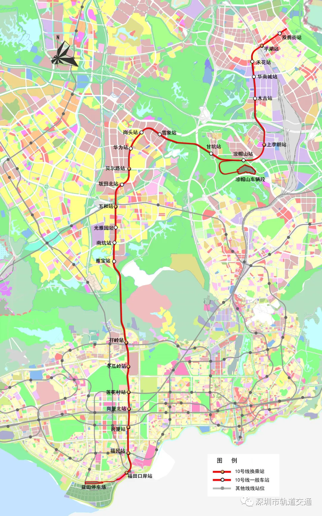 地鐵10號(hào)線屬于深圳市軌道交通三期工程項(xiàng)目,南連與香港毗鄰的福田口岸站,北接龍崗區(qū)的平湖樞紐,全長(zhǎng)約29公里,跨福田、龍華、龍崗,設(shè)站24座。