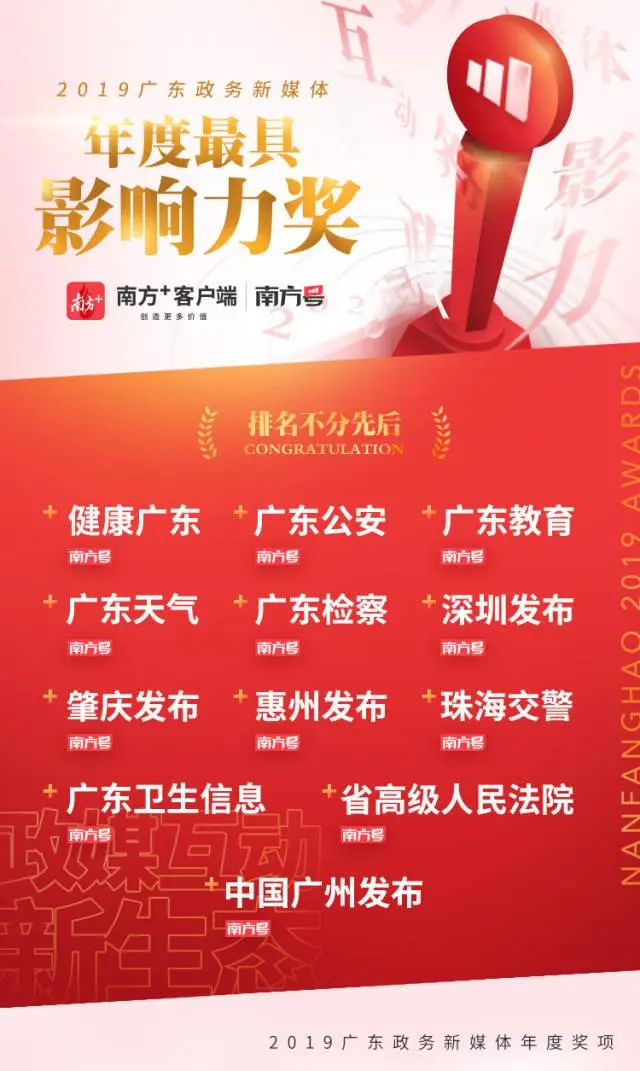 ▲2019年廣東政務(wù)新媒體年度最具影響力獲獎(jiǎng)名單