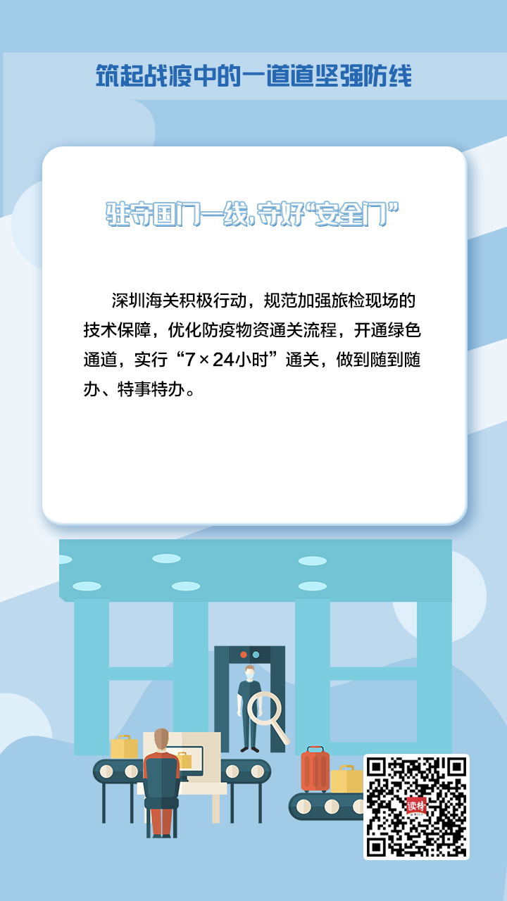 牢記習(xí)近平總書記的重要指示,深圳在新冠肺炎疫情防控的人民戰(zhàn)爭(zhēng)、總體戰(zhàn)阻擊戰(zhàn)中,鑄造了一支由不同“兵種”、精銳之師組成的守護(hù)者隊(duì)伍,堅(jiān)定地筑起一道堅(jiān)強(qiáng)屏障,守護(hù)好城市“外防輸入、內(nèi)防擴(kuò)散”的門戶。