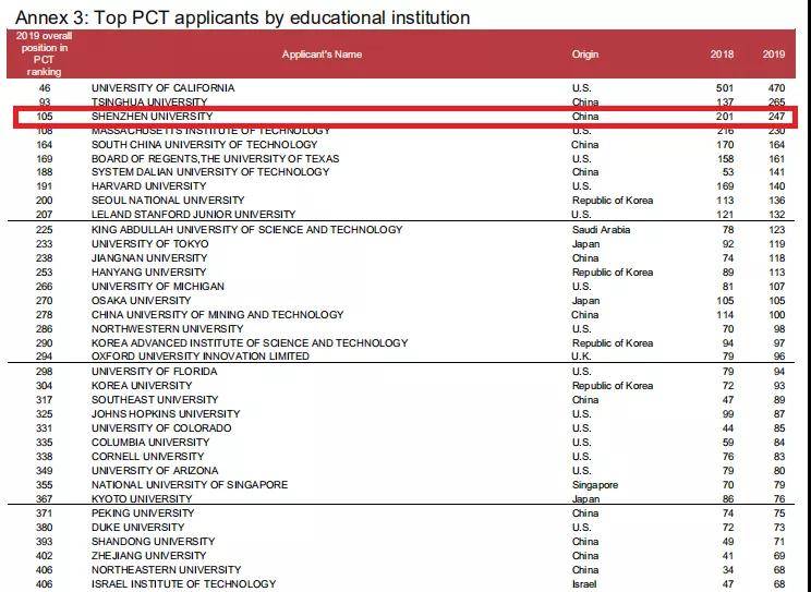 見圳客戶端·深圳新聞網(wǎng)2020年4月8日訊(見圳客戶端、深圳新聞網(wǎng)記者金洪竹)4月7日,世界知識產(chǎn)權(quán)組織(WIPO)官方網(wǎng)站公布2019年國際專利申請情況。中國首次超越美國,成為通過WIPO提交國際專利申請(PCT)的最大來源國。在全球PCT申請教育機構(gòu)中,深圳大學以247件專利數(shù)量再次位列全球第3,僅次于加州大學系統(tǒng)和清華大學。