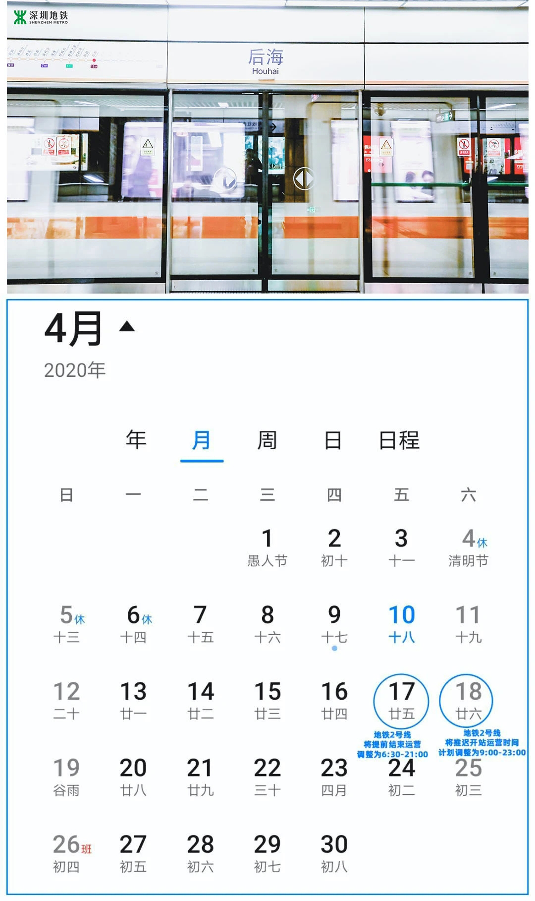 見圳客戶端·深圳新聞網(wǎng)2020年4月13日訊(見圳客戶端、深圳新聞網(wǎng)記者 陳致遠(yuǎn))記者從深圳地鐵了解到,為了配合新線開通,地鐵2號線將于17日(本周五)、18日(本周六)調(diào)整運(yùn)營時間。17日晚將提前至21點(diǎn)結(jié)束運(yùn)營,18日早將推遲至9點(diǎn)開始運(yùn)營。在此期間其他線路運(yùn)營時間不變。