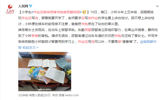 為了逃避開學被老師懲罰,??谝恍W生直接把書包扔了。