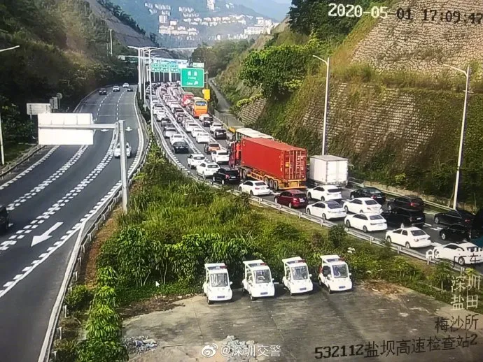 17時許,大鵬交通出現(xiàn)明顯高峰,坪葵路交通一直緩行至接近小梅沙路段。