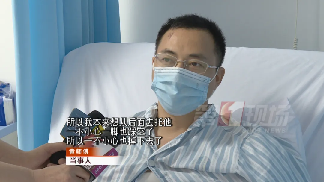 記者在病房見到了救人受傷的黃師傅。他說當(dāng)時一心只想著救人,忽略了做好安全措施。