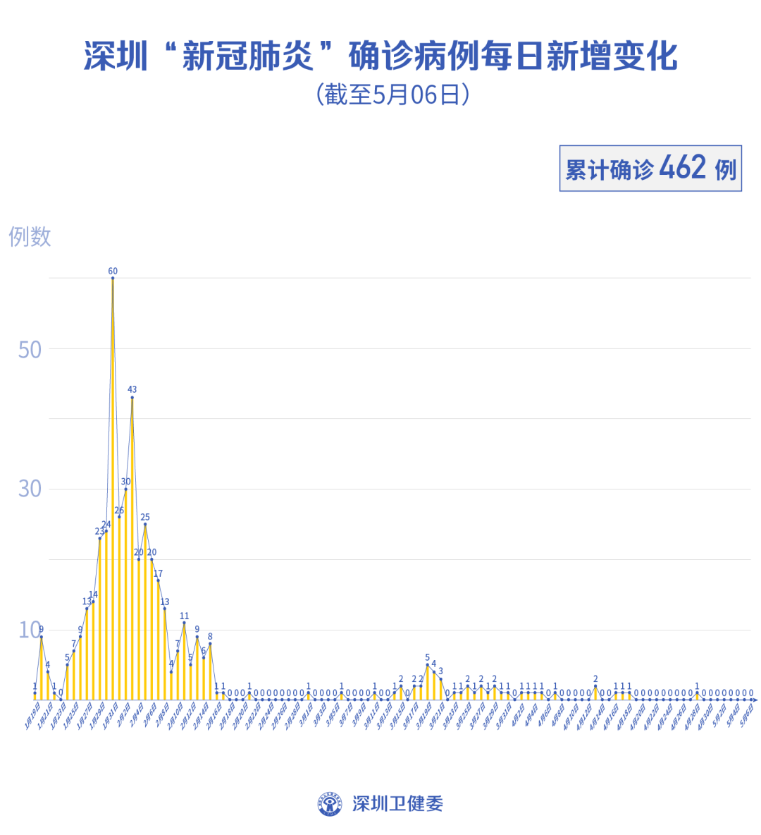 截至5月6日24時,深圳累計報告新冠肺炎病例462例。在院治療僅有1例。