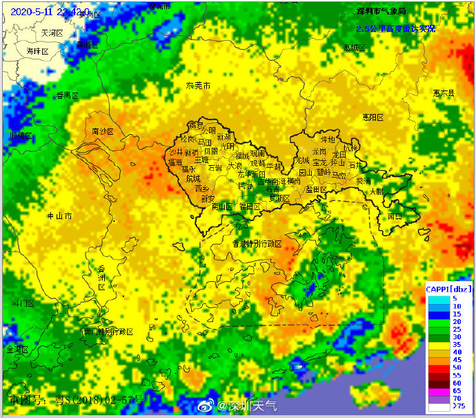 22時11分:強降雨已經(jīng)影響到鹽田和大鵬地區(qū),西部地區(qū)雖然雨勢減弱,但還將持續(xù)1-2小時,請大家睡前關(guān)好門窗。