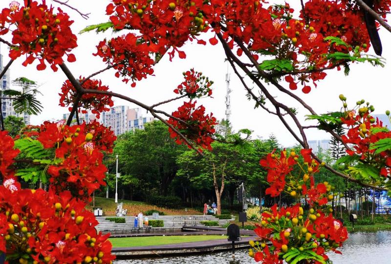 超美?。⑷~如飛凰之羽,花若丹鳳之冠"!鵬城鳳凰花盛開