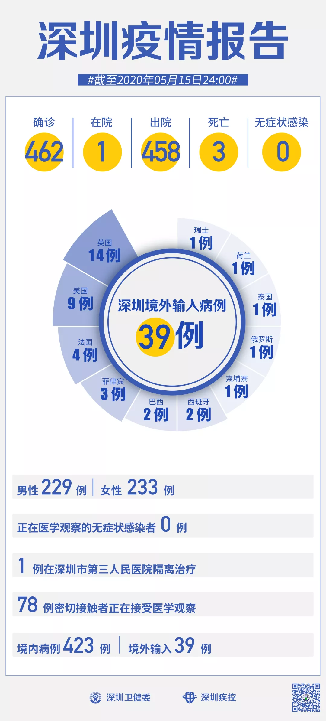 截至5月15日24時(shí),深圳累計(jì)報(bào)告新冠肺炎病例462例。
