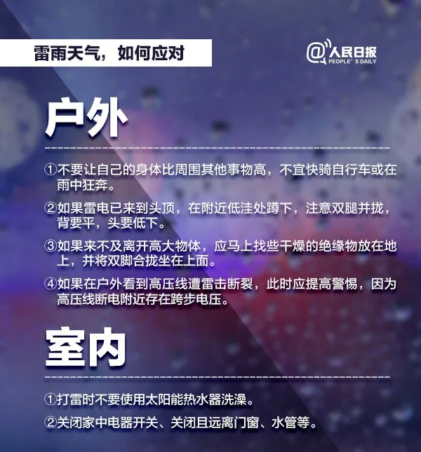 √雷雨天氣容易發(fā)生泥石流、山體滑坡,如在野外,請不要在室外逗留,盡快遠(yuǎn)離危險的地方。