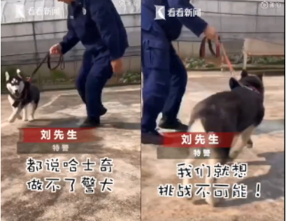 最近,云南某特警隊(duì)和消防隊(duì)的小哥哥想挑戰(zhàn)不可能。于是收養(yǎng)了兩只二哈,一只叫不拆一只叫八萬,都是有正式編制的警犬。