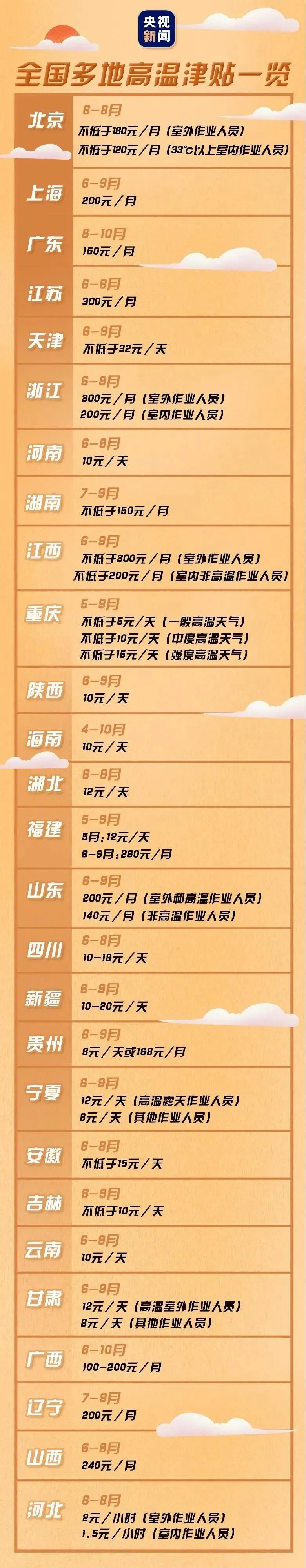 6月起,部分省份高溫津貼要開始發(fā)放了!對(duì)于勞動(dòng)者,特別是戶外勞動(dòng)者而言,這個(gè)夏天可能將增加一項(xiàng)收入來源。