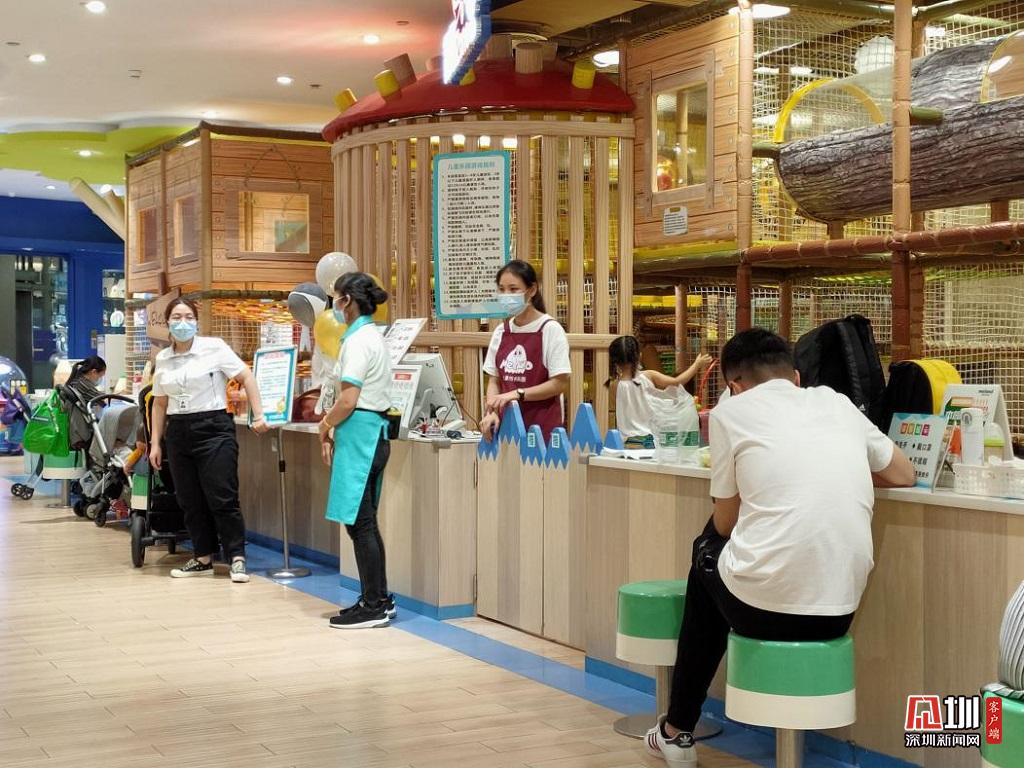 場所內(nèi)游樂設施分三個大區(qū),分別為手工區(qū),樂園區(qū)和電玩區(qū)。根據(jù)工作人員介紹該場所主打的是樂園區(qū),為兒童提供了如滑梯、跳跳床、迷宮、沙丘、球池等設施供兒童玩樂,如果小孩喜歡玩電動游戲或者制作手工,這里也有相應的游玩區(qū)域。每位兒童必須在家長陪伴下才能進入,家長可選擇在休息區(qū)休息或進入場所與兒童一起玩耍。場所周圍沒有飯店和母嬰室,步行50米左右可到達商場的公共廁所。
