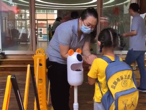 老師依次對(duì)孩子進(jìn)行體溫檢測
