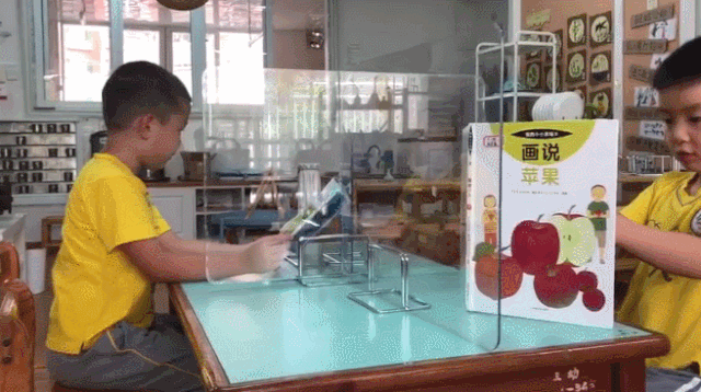 同時(shí),園內(nèi)教室桌上設(shè)置了擋板,