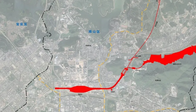 深大城際全線擬設13座車站,其中深圳市境內10座,惠州市境內3座,線路全長86.83km(深圳市72.20km,惠州市14.63km),深圳段均采用地下敷設。該線路串聯(lián)深圳北部第二圈層多個組團,對實現(xiàn)大亞灣、坪山、大運、五和樞紐等關鍵節(jié)點與深圳機場的快捷聯(lián)系有重要意義。