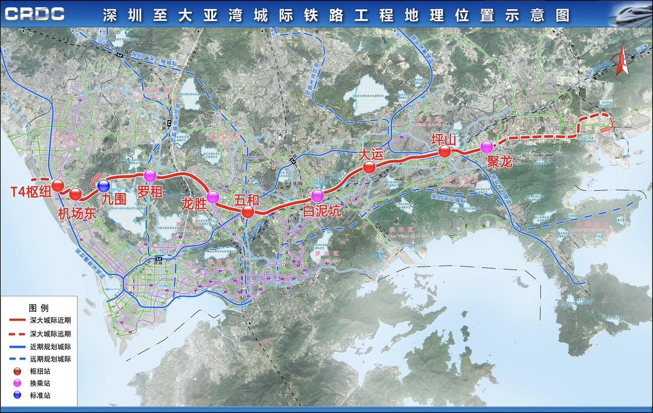 深圳市城市交通規(guī)劃設計研究中心受中國鐵路設計集團有限公司委托,開展深圳至大亞灣城際(以下簡稱“深大城際”)鐵路工程可行性研究社會穩(wěn)定分析專題研究。根據(jù)其發(fā)布的公示信息,深大城際鐵路規(guī)劃自寶安機場T4站至惠州大亞灣經濟技術開發(fā)區(qū),途經寶安區(qū)、龍華區(qū)、龍崗區(qū)、坪山區(qū)、惠州市大亞灣地區(qū),其中深圳段為近期實施工程,惠州段為遠期預留工程。