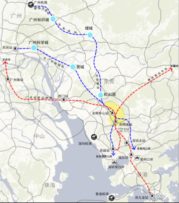 提升國(guó)際交往便利度。依托中深惠城際、深莞城際和城市軌道,加強(qiáng)與深圳寶安國(guó)際機(jī)場(chǎng)、廣州白云國(guó)際機(jī)場(chǎng)的快速聯(lián)系。依托廣深港客專、深莞城際、深廣中軸城際和城市軌道,加強(qiáng)與香港西九龍口岸、深圳灣口岸、皇崗口岸、福田口岸等的便捷聯(lián)系。