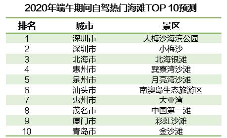 《報告》預(yù)計,端午期間全國自駕熱門海灘游TOP10主要集中在南部沿海地區(qū),其中珠三角占6席。熱門海灘游中的深圳-大梅沙海濱公園、小梅沙以及北海-北海銀灘,成為全國自駕熱門海灘景區(qū)三甲。