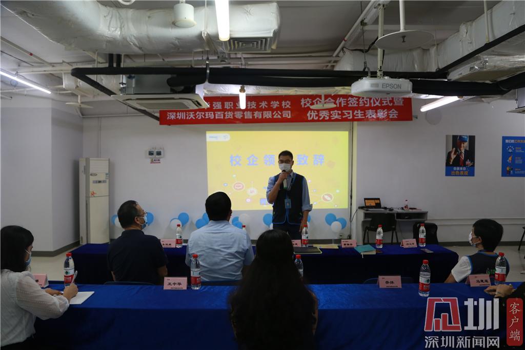 沃爾瑪是世界500強企業(yè),在深圳有30多家門店,6000多名員工。華強職校是國家中職示范校、國家級重點職校,曾入選中國職業(yè)教育百強校。沃爾瑪公司為華強職校學(xué)生提供了“老帶新”一對一現(xiàn)場培訓(xùn)、“沃課堂”線上課程等培訓(xùn)機會,并提供了充足的實習(xí)崗位。目前,學(xué)校共有102名學(xué)生在深圳沃爾瑪各門店實習(xí)。