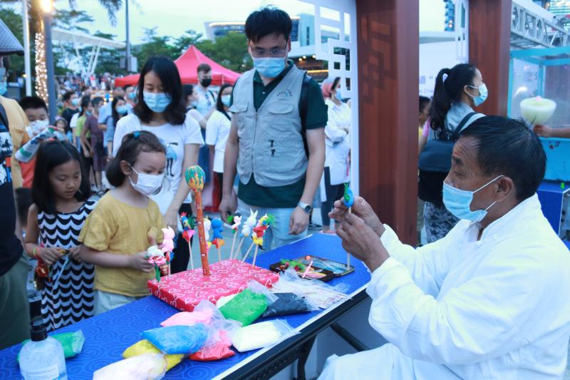 糖畫、捏面人、穿漢服……當(dāng)晚的海上世界廣場(chǎng)熱鬧祥和,約300人次中外居民歡聚一起,互致美好祝福,在感受中國傳統(tǒng)文化當(dāng)中共度端午佳節(jié)。