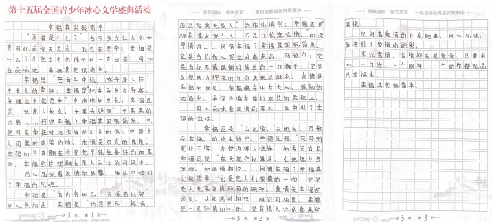 據(jù)活動組委會相關(guān)負(fù)責(zé)人介紹,“第十五屆全國青少年冰心文學(xué)盛典”以“2020文學(xué)之路,向上的力量”為主題,全程公益免費(fèi),設(shè)置了小學(xué)低年級組(1-3年級 )、小學(xué)高年級組(4-6年級 )、初中組、高中組、大學(xué)組、教師組、文學(xué)愛好者組等多個組別。值得注意的是,所有報名選手必須使用本次活動專用稿紙進(jìn)行書寫創(chuàng)作。組委會將會根據(jù)選手報名提交的郵寄地址免費(fèi)郵寄活動專用稿紙,每人僅限領(lǐng)取5張。選手完成手寫作品以后,將作品掃描或拍照發(fā)送到全國青少年冰心文學(xué)寫作指導(dǎo)中心深圳組委會指定郵箱szbxwx@126.com(冰心文學(xué)深圳)或gdbxwx@126.com(冰心文學(xué)廣東)。